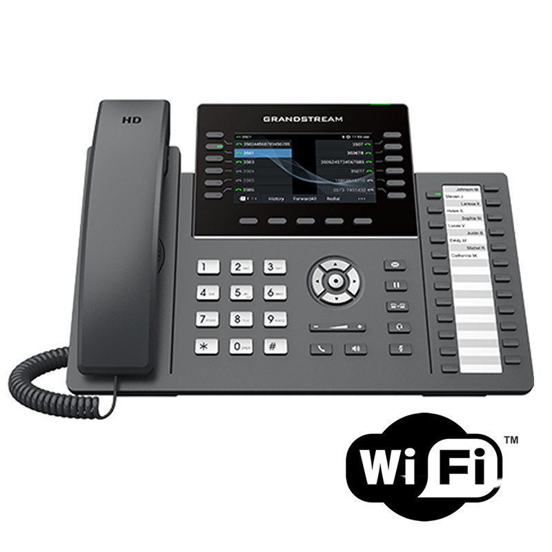 Teléfono IP con 12 líneas y 6 cuentas SIP, pantalla de 4,3″, 2 puertos Ethernet 1 Gigabit 10/100/1000, con tecnología Noise Shield para minimizar el ruido de fondo.
