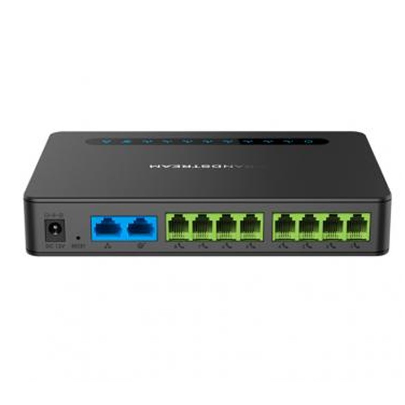 HT818 Soporta 8 perfiles SIP y 8 puertos FXS. Conferencia de voz de 3 vías por puerto. NAT integrado.